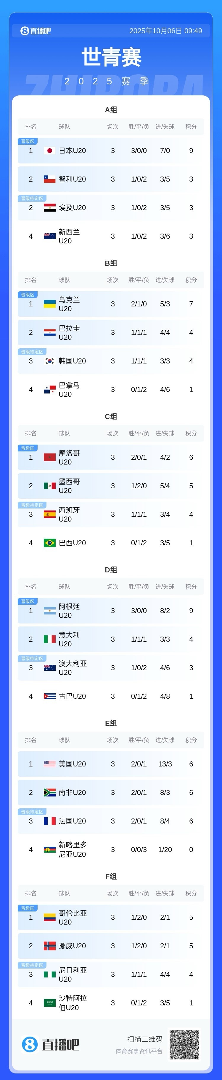 D组,澳大利亚U20队1胜2负积3分位居小组第三位,无缘晋级16强;F组,沙特U20队1平2负积1分,排在小组临了一位出局。