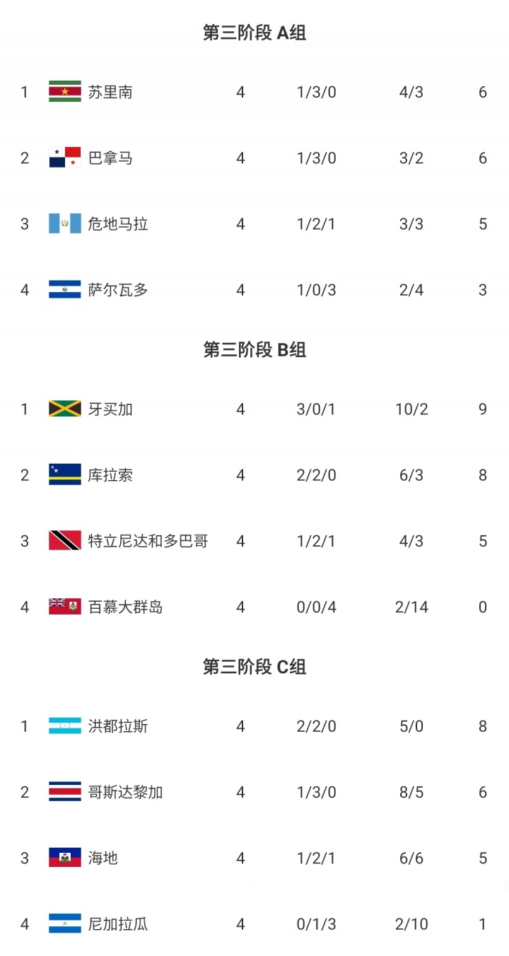 11月13日讯 中北好意思区世初赛行将进行临了两轮,FIFA官方晒图预热,四支加勒比海地区球队有望晋级2026宇宙杯,分袂是库拉索、海地、牙买加和苏里南。