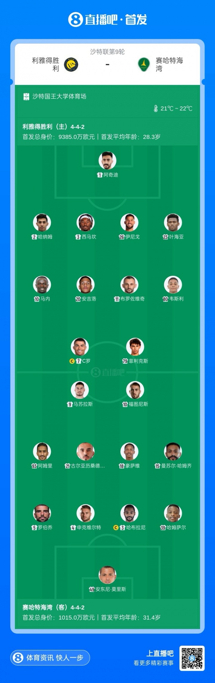 利雅得告捷vs赛哈特海湾首发:C罗、菲利克斯、马内出战 科曼缺阵