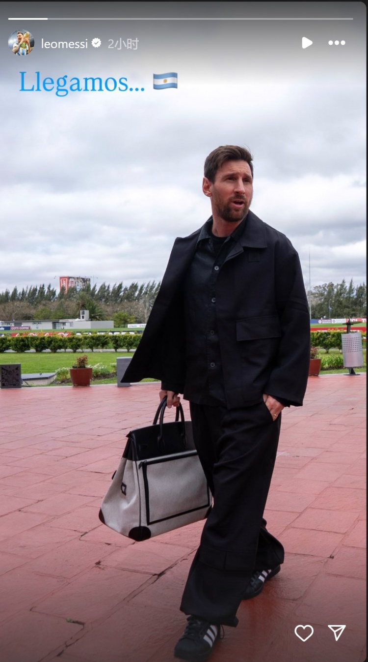 梅西社媒晒出拎着包来到国度队报到的像片,配文:“咱们到了。”