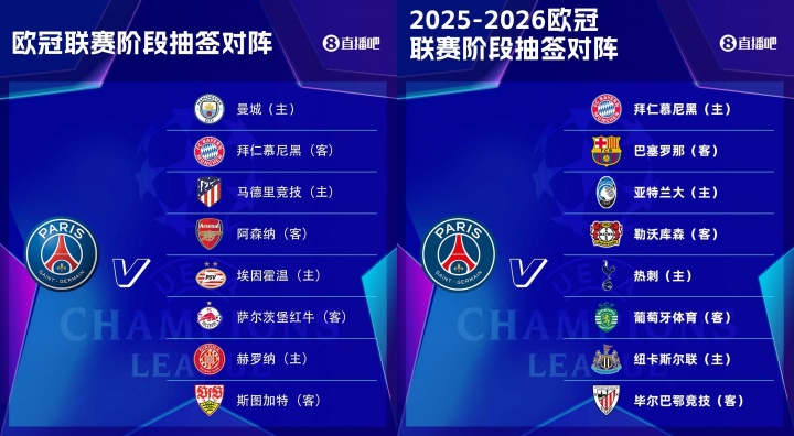 08月29日讯 25/26赛季欧冠联赛阶段抽签出炉,巴黎的签运欠安,又是一众朱门劲旅。对比上赛季过犹不足。