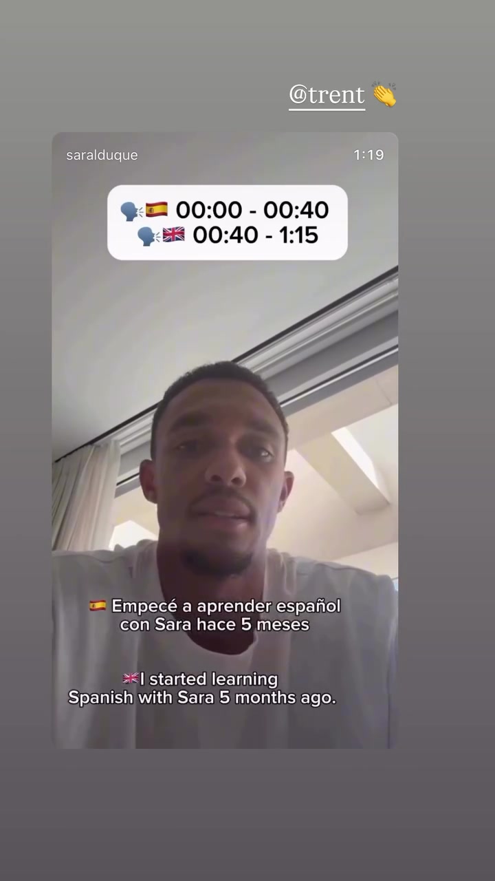 视频中,阿诺德用西语说:“你好,我是特伦特,5个月前我启动和Sara学习西班牙语。曩昔我从没说过西班牙语,我念念更好地和队友、教师、球迷调换,更好地相宜俱乐部和西班牙生涯,是以才学习西班牙语。我相配心爱这些课程,因为这专注于足球术语、发布会、采访以及与队友的调换,我相配心爱这些课程。”