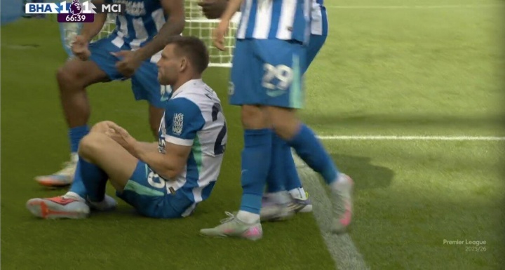 曼城1-1布莱顿!米尔纳点射破旧主&致意若塔,努内斯手球送点