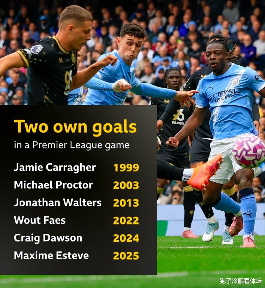 他成为英超联赛历史上第六位在合并场比赛中打进两记乌龙球的球员,亦然自2024年12月克雷格·说念森代表狼队对阵埃弗顿献技乌龙双响后,第一位作念到这少量的球员。