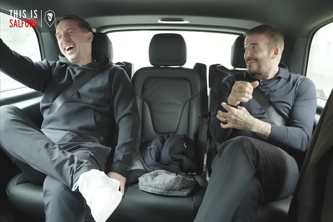 10月25日讯 手脚英乙球队索尔福德城的鸠搭伙东,贝克汉姆和加里-内维尔拍摄了参不雅球队的Vlog。在视频中,两东谈主磋商起了我方的球员待业金。