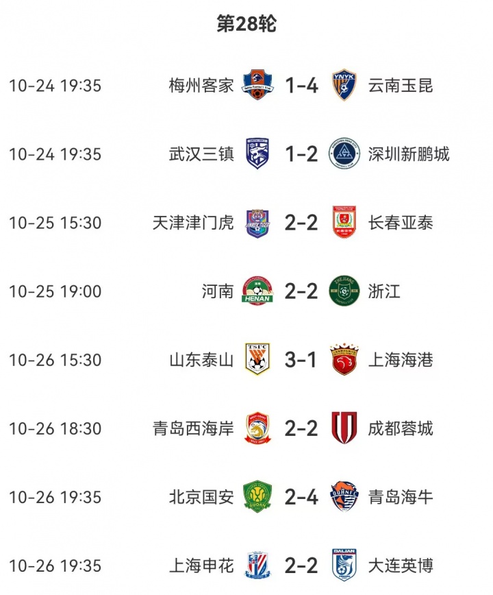 透澈尖锐化!中超还剩2轮,正数3名、倒数3名之间均1分之差
