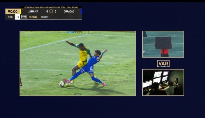 11月19日讯 世初赛中北好意思及加勒比海预选赛第三阶段收官战,牙买加vs库拉索,牙买加第95分钟得到点球!裁判检讨回放取消点球。