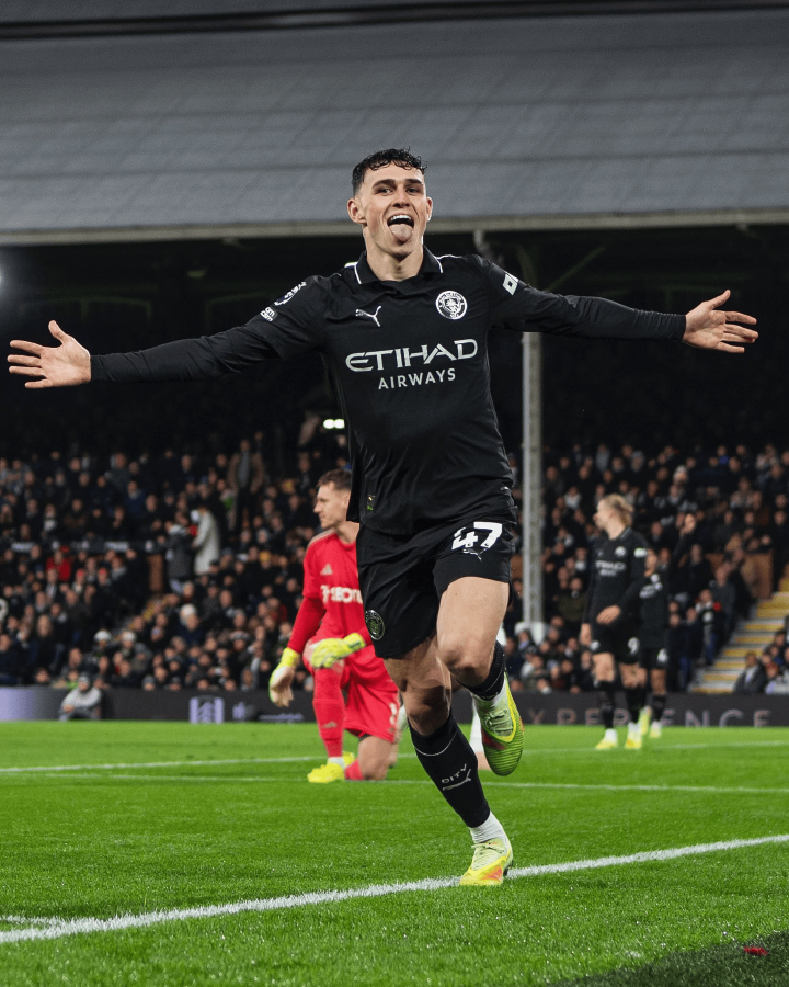 虎扑12月03日讯英超第14轮,曼城客场5-4打败富勒姆,福登在比赛中梅开二度。