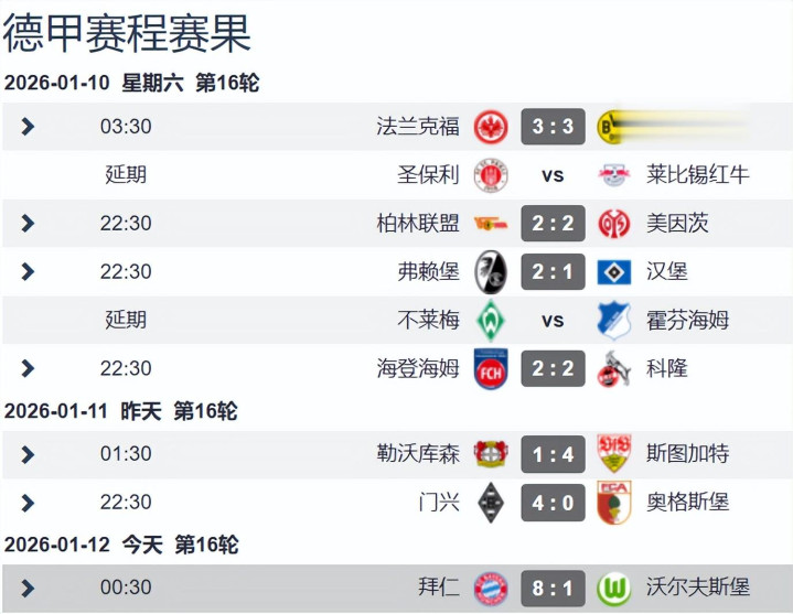 8-1! 五大联赛唯独莫得夺冠悬念的是德甲 拜仁11分+51净胜球领跑