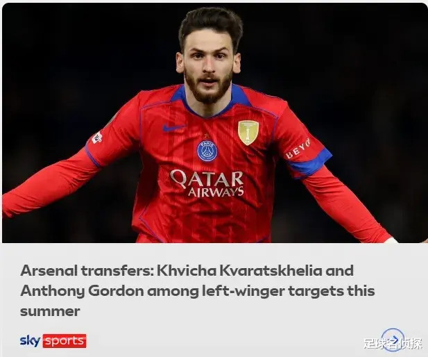 天空体育记者LT消息,阿森纳正寻求在今夏签下一名左翼锋,克瓦拉茨赫利亚以及安东尼-戈登都是他们密切关注的目标。