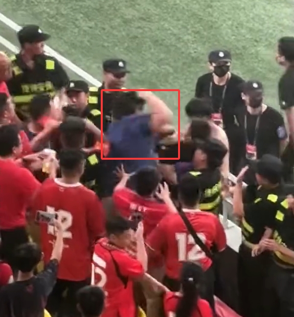 据现场球迷拍摄的视频线路,看台上发生了球迷突破。其中别称蓝一稔的挥拳打完对方,随后回身走了。