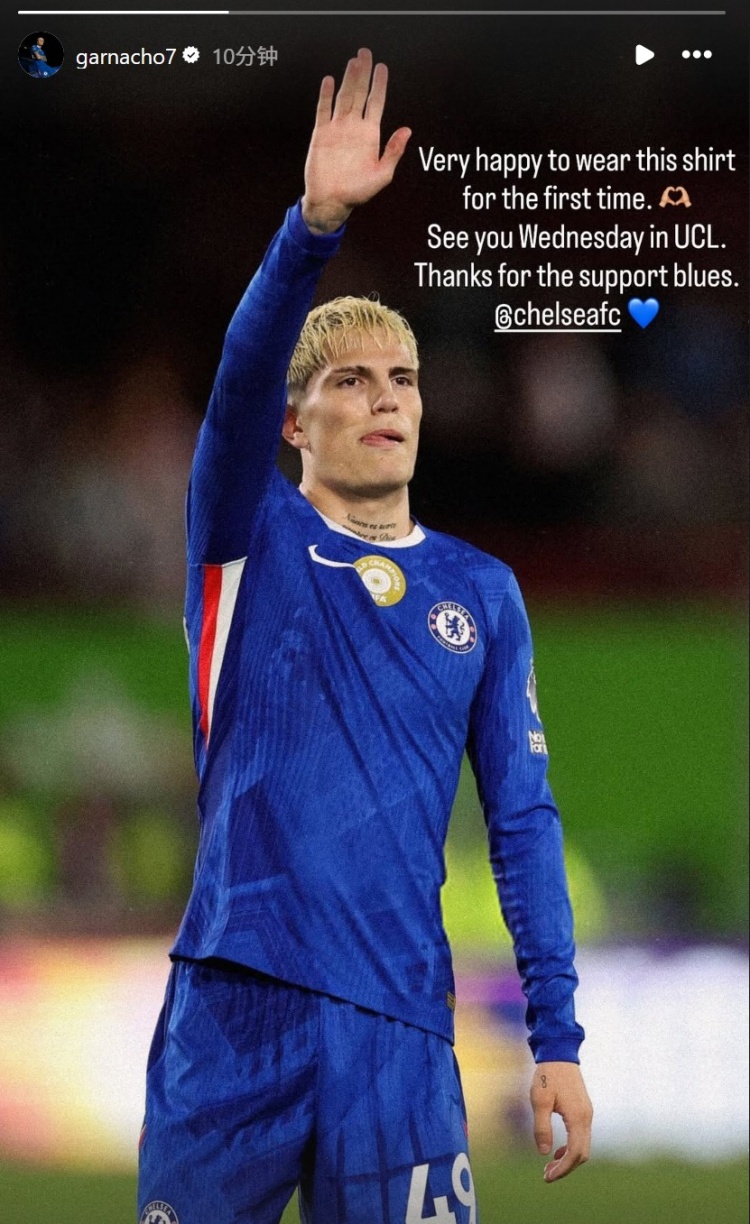 加纳乔社媒晒照:相配首肯身披蓝军战袍完成首秀,周三欧冠相遇!