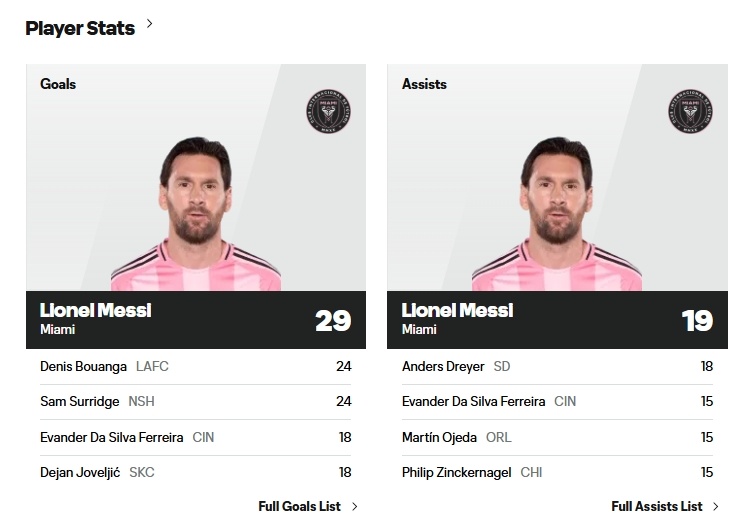双双霸榜👑 38岁梅西惯例赛28场29球19助,获惯例赛金靴+助攻王
