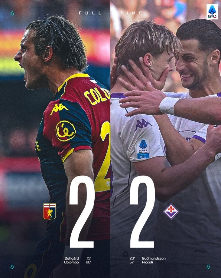11月9日讯 在本轮意甲一场保级区对决中,佛罗伦萨2-2战平热那亚。