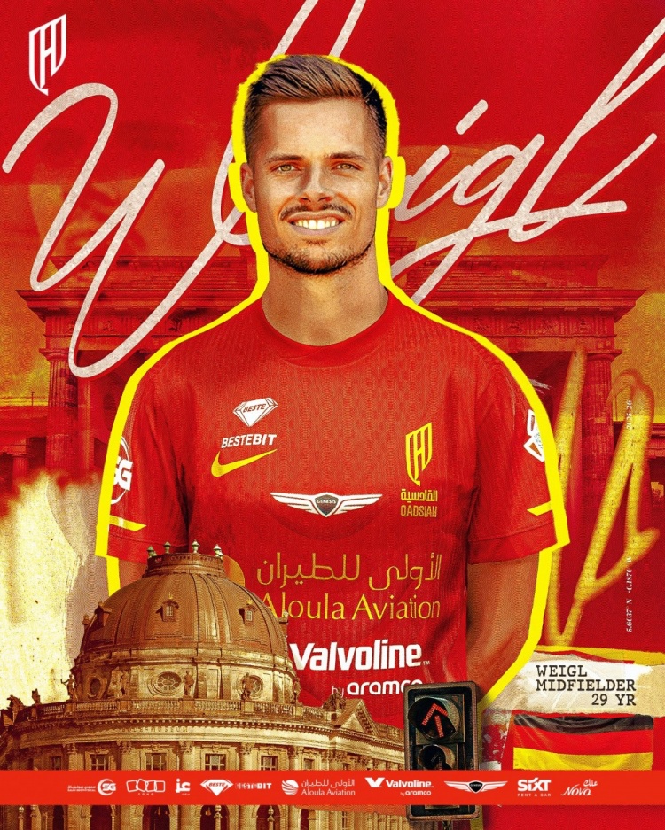 9月2日讯 沙特库迪西亚俱乐部官方告示,与门兴格拉德巴赫完毕条约,签下了德国中场魏格尔。