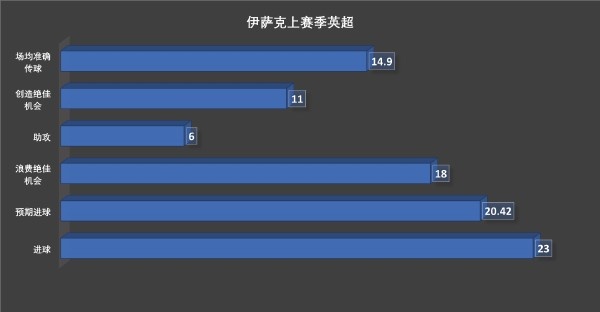 上赛季伊萨克在英超打入23球(预期进球是20.42个),不外他也错失了18次绝佳得分契机。应该说伊萨克的射门不够厚实,有些球质地很高,却也会错失一些好契机。