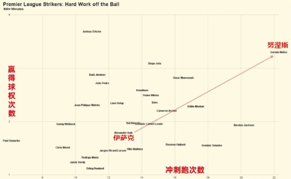 不外伊萨克思要复制登贝莱的得手,来源要责罚的问题是他的无球跑动积极性。从上赛季英超数据可以看到,伊萨克的抗击空想(赢得球权次数)和冲刺跑比例王人偏低。